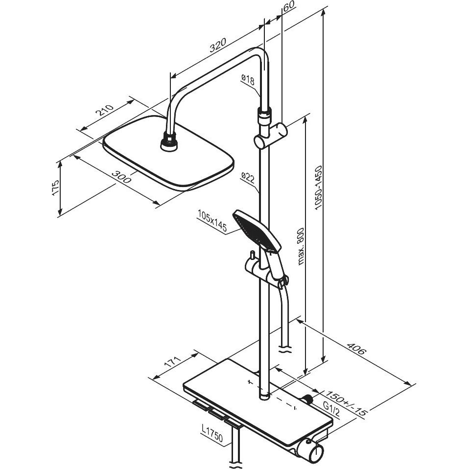 Эта душевой комплект включает в себя стойку высотой 145 см, душевую лейку диаметром 14,5 см с изливом длиной 5,6 см, а также пластиковый шланг длиной 175 см. Верхний душ имеет размеры 30 см с вылетом в 38 см для широкого покрытия. Латунь, применяемая в конструкции, обеспечивает долговечность. Встроенный клапан предотвращает обратный поток воды, а ограничение температуры гарантирует безопасность. Все соединения разработаны с учетом минимизации износа и перекручиваний.