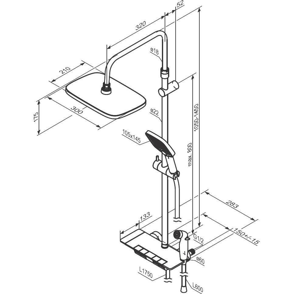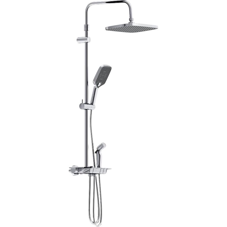 Душевая стойка Damixa Gala имеет высоту 145 см и весит 4 кг. Верхний душ диаметром 30 см позволяет наслаждаться эффектом 'тропического дождя' с вылетом 37.2 см. Душевая лейка размером 14.5 см предлагает три режима струи. Пластиковый шланг длиной 175 см обладает защитой от перекрута благодаря поворотным конусам. Устройство дополнено термостатическим картриджем и встроенным клапаном, препятствующим обратному потоку воды.