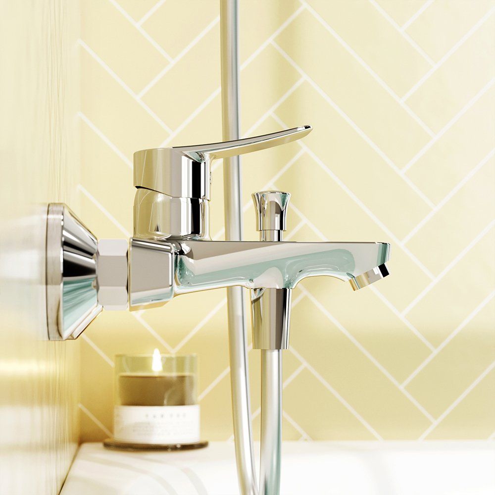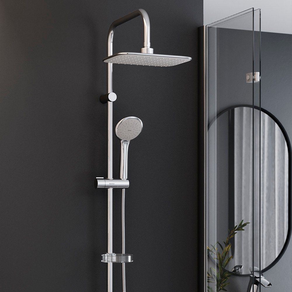 Обратите внимание: душевая стойка не регулируется по высоте, а смеситель уже включен в комплект. Будьте уверены в простоте установки благодаря входящим в комплект эксцентрикам и гибкой подводке. Эти характеристики делают установку легкой, быстрой и удобной.