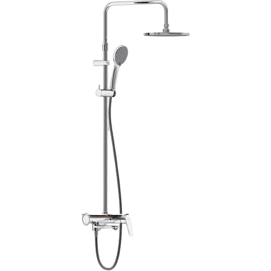 Душевая стойка Damixa Jupiter имеет высоту 145 см и вес 4 кг. Изготовлена из латунных и пластиковых элементов. Верхний душ диаметром 22.5 см с вылетом 38 см обеспечивает широкое покрытие водой. Ручная лейка диаметром 12 см предлагает три режима струи. Длина излива составляет 19.1 см, а длина шланга — 150 см. Шланг выполнен из стойкого к перекручиванию пластика. Места соединений оснащены поворотными конусами или подшипниками для надежности. В комплект также входят держатель для душа, аэратор, крепления и эксцентрики. Смеситель укомплектован керамическим картриджем.