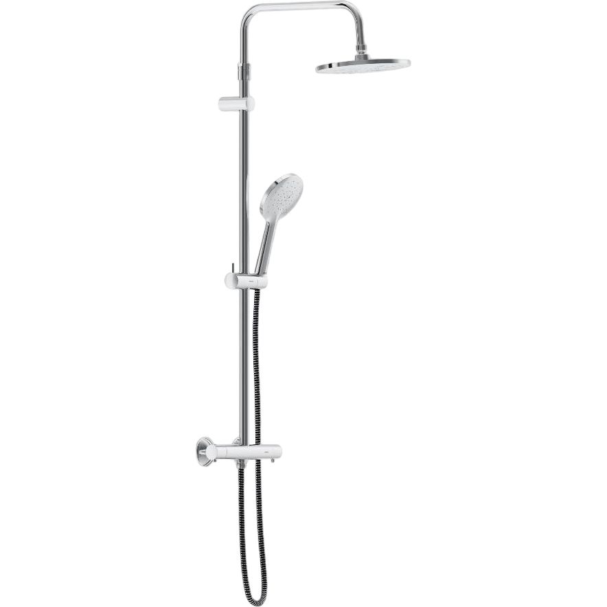 Душевая стойка Damixa Jupiter 977800000 изготовлена из латуни, что гарантирует ее долговечность и стойкость к коррозии. Высота стойки составляет 145 см, что обеспечивает удобство использования для людей любого роста. Верхний душ диаметром 22.5 см и вылетом 36 см обеспечивает дождевой эффект, погружая вас в комфортное облако теплых капель. Душевая лейка диаметром 12 см имеет один режим струи, что упрощает выбор необходимой интенсивности воды. Растягивающийся шланг длиной 150 см оснащен поворотными конусами, предотвращающими перекручивание. Встроенный термостатический картридж и ограничение температуры воды обеспечивают надежность и безопасность использования.