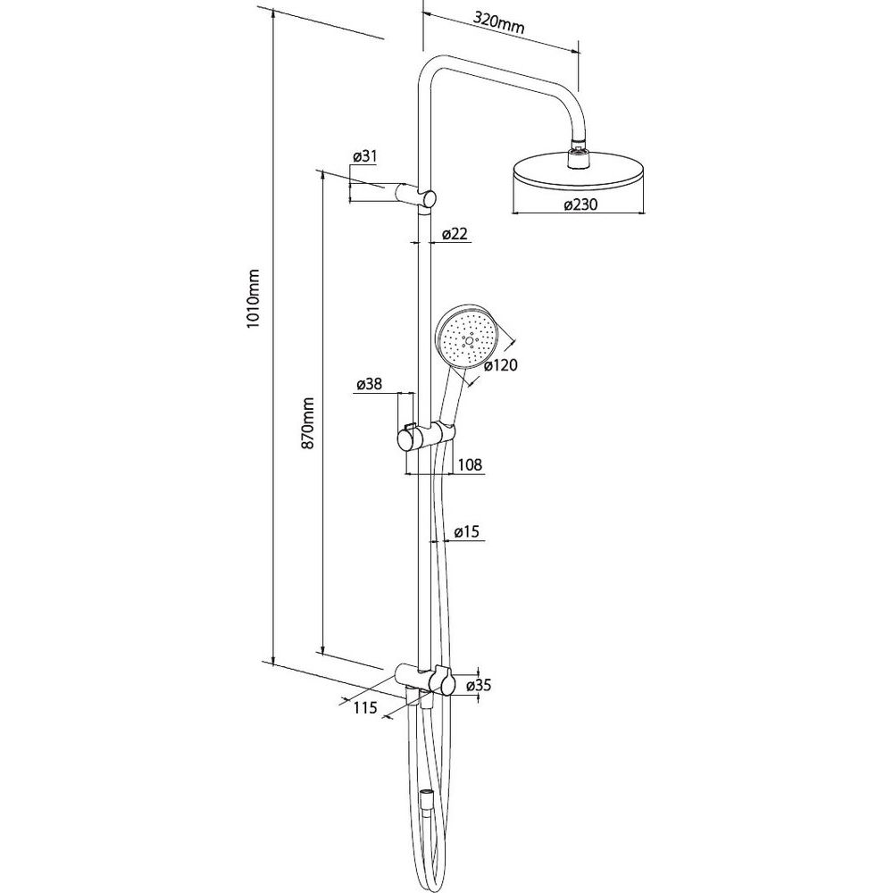 Душевая стойка Damixa Origin Bit DX977700200 имеет высоту 101 см и весит всего 1.9 кг. Материалы конструкции включают латунь, нержавеющую сталь и элементы из пластика. Верхний душ диаметром 23 см с вылетом 37 см обеспечивает мягкое и обволакивающее попадание воды. Лейка с размером 12 см имеет один режим струи, деликатно массируя кожу. Металлический шланг длиной 150 см безопасен от перекручиваний благодаря специальной конструкции соединений.