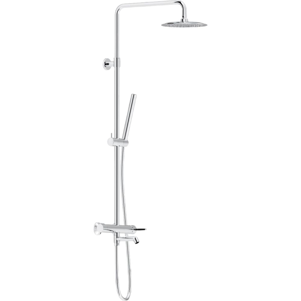 Высота стойки составляет 145 см, что оптимально для стандартной ванной комнаты. В основе конструкции — латунь и пластик, что обеспечивает прочность и легкость (всего 2.5 кг). Верхний душ диаметром 25 см с вылетом 44.5 см обеспечивает огромное покрытие для комфортного водопадного эффекта. Ручная лейка в 5.4 см имеет один режим струи, что идеально подходит для быстрого освежающего душа. Благодаря поворотному изливу длиной 19.4 см вы можете легко переключаться между ручной лейкой и тропическим душем. Длина пластикового шланга составляет 175 см, а специальные подшипники предотвращают его перекручивание. Система оснащена клапаном защиты от обратного потока и ограничителем температуры для безопасного использования.