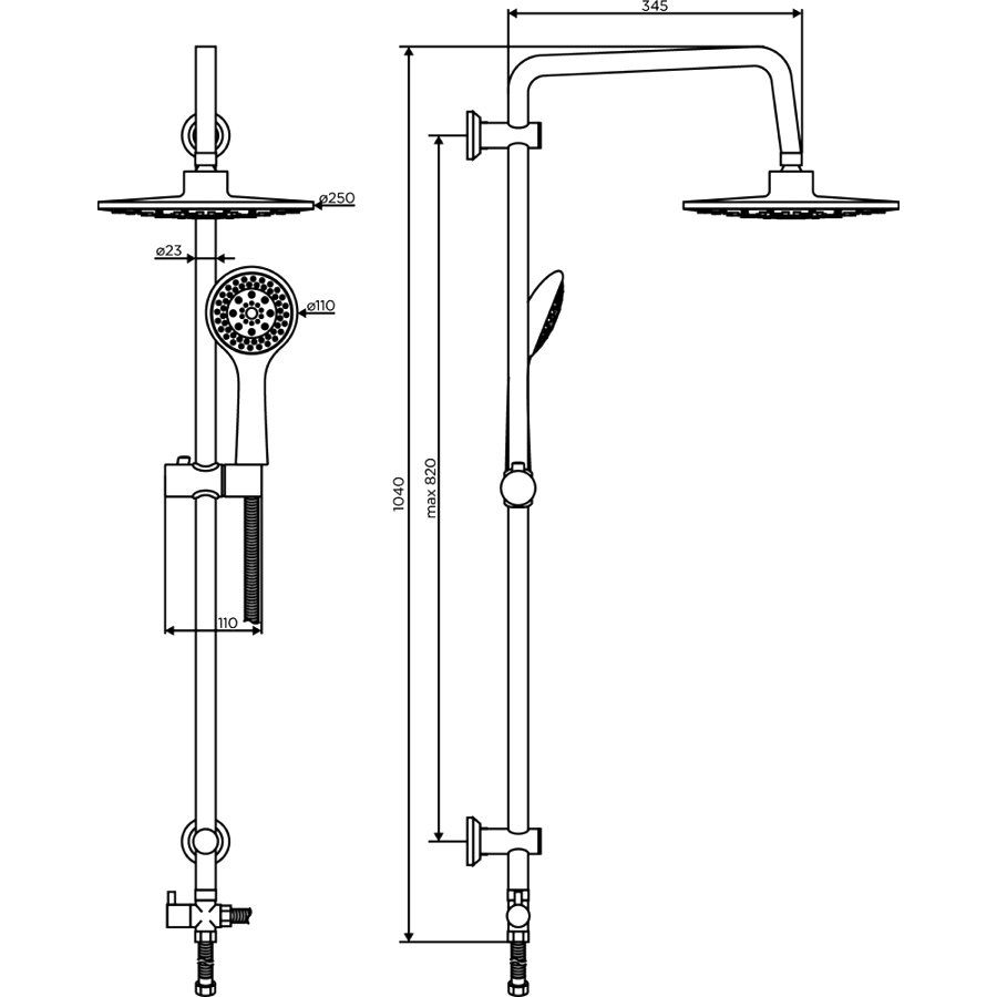 - Размер верхнего душа: 21.5 см с вылетом 39.5 см для равномерного распределения потока воды.