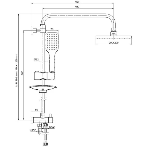 - высота изделия составляет не менее 880 мм - не более 1220 мм