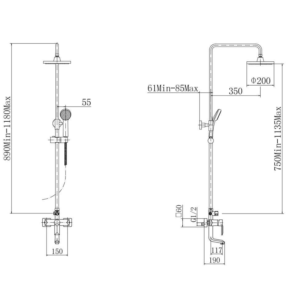 Смеситель уже интегрирован в комплект, поэтому установка займет минимальное количество времени. Все необходимые элементы, включая эксцентрики, входят в набор. Обратите внимание на возможность регулировки высоты стойки, что делает этот комплект идеальным для семей с разными предпочтениями в высоте размещения душа.