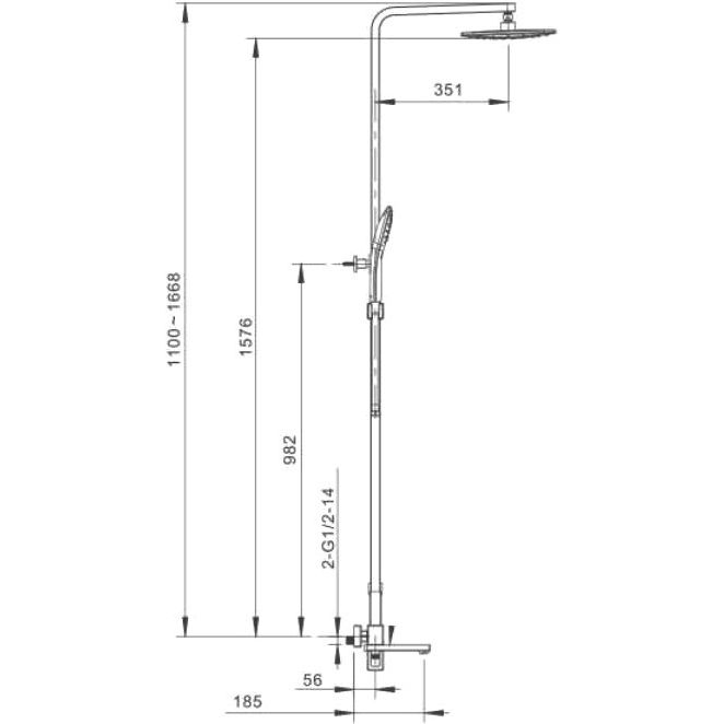 Высота душевой стойки составляет 166,8 см, что обеспечивает удобную настройку для пользователей разного роста. Её вес — 8 кг, что обеспечивает устойчивость и надежность конструкции. Душевая лейка с 3 режимами струи, а также поворотный традиционный излив длиной 18,5 см способствуют максимальному комфорту во время водных процедур. Верхний душ имеет диаметр 25 см и вылет 40,7 см, создавая обширную зону дождевого потока. В комплект включены: душевой шланг длиной 150 см, держатель для душа, переключатель потоков и практичный аэратор. Прекрасное дополнение — эксцентрики для легкой установки.