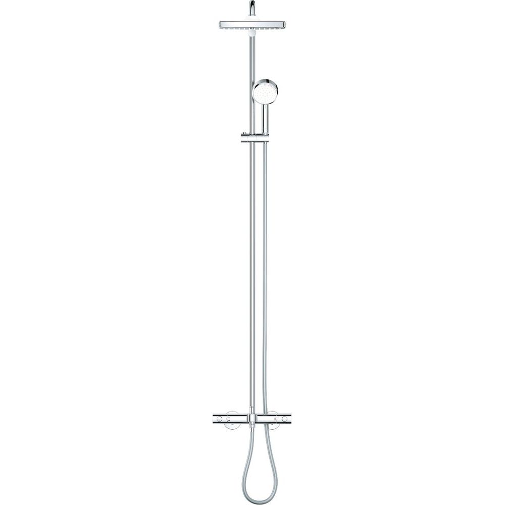 Grohe Tempesta Cosmopolitan System 250 — это душевая стойка, совмещающая в себе инновационные технологии и элегантный дизайн. Она позволяет превратить ваши водные процедуры в настоящее удовольствие, благодаря широкому функционалу и качественным материалам. Верхний душ диаметром 25 см с элегантным дизайном и режимом струи Rain подарит вам настоящие моменты релаксации. Ручная лейка дополняет функционал двумя режимами струи — Rain и Jet.