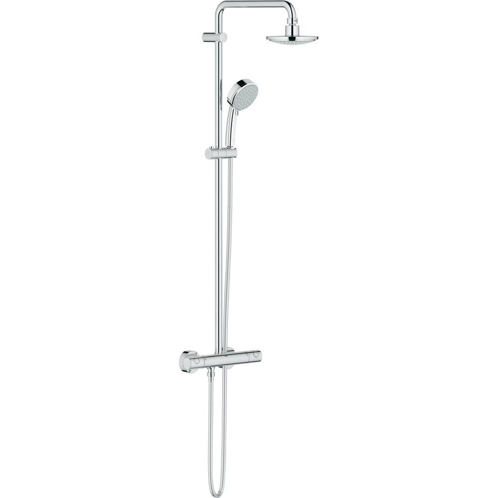 Душевая стойка Tempesta New от немецкого бренда Grohe — это не просто сантехническое оборудование, а воплощение надежности и стиля для вашего комфорта. Эта душ система объединяет в себе передовые технологии и высококачественные материалы, обеспечивая максимальное удобство и экономию воды. В комплекте термостат с аквадиммером, который стабилизирует температуру и напор воды, а система SpeedClean гарантирует легкую очистку форсунок.