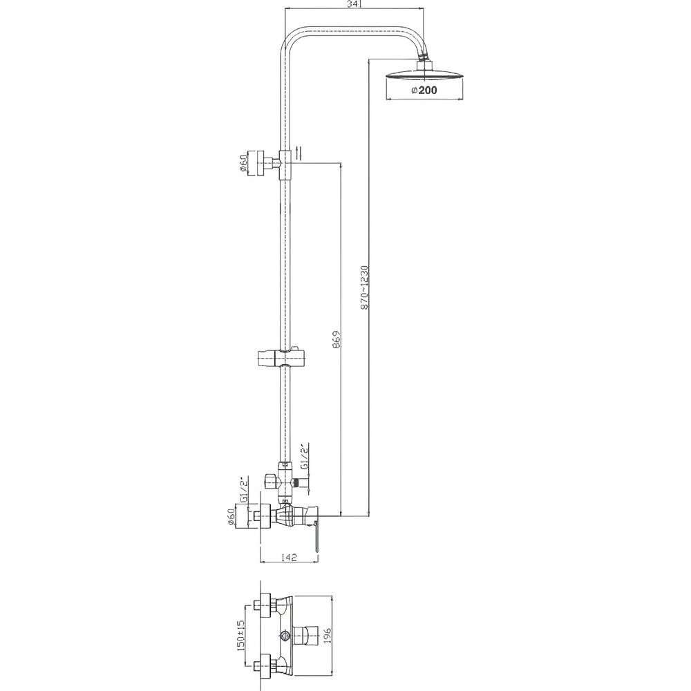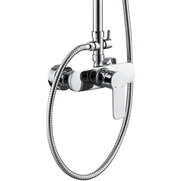 Душевая стойка имеет высоту 123 см и оснащена верхним душем диаметром 20 см с вылетом 34.1 см, обеспечивая обширное покрытие для максимального комфорта. Лейка имеет один режим струи, что делает ее управление легким и интуитивно понятным. Комплект включает в себя 150-сантиметровый металлический шланг с поворотными конусами, предотвращающими перекручивание. Керамический картридж в смесителе обеспечивает надежность и герметичность. Все необходимые аксессуары для монтажа, такие как эксцентрики, также входят в комплект.