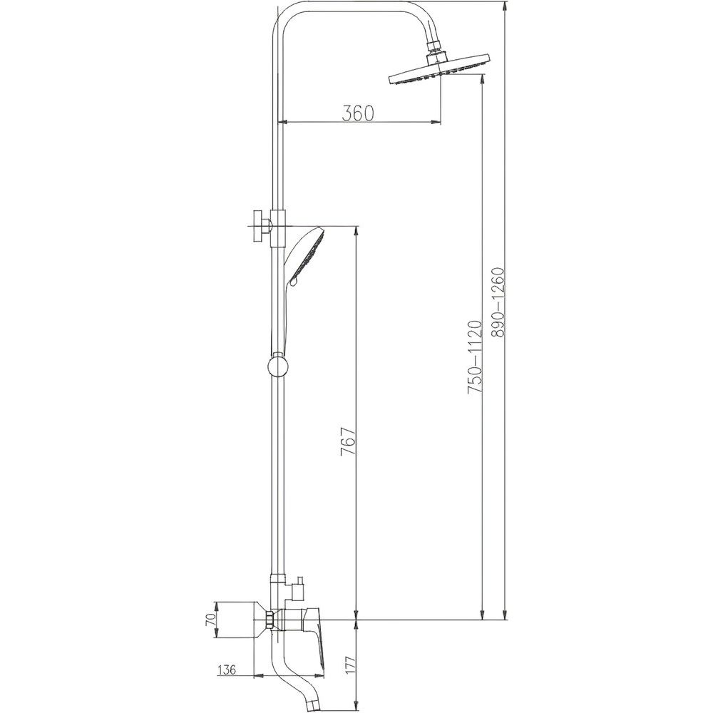 Душевая стойка Haiba HB2414 имеет высоту 126 см и оснащена верхним душем диаметром 20 см, с вылетом 36 см. Душевой шланг длиной 150 см с металлической конструкцией обеспечивает надёжность, а специальный механизм предотвращает перекручивание. Комплект включает фиксированный традиционный излив длиной 13.6 см и элегантную душевую лейку с тремя режимами струи для различных настроений в душе. Смеситель уже в комплекте, что упрощает установку и обеспечивает максимальную функциональность.