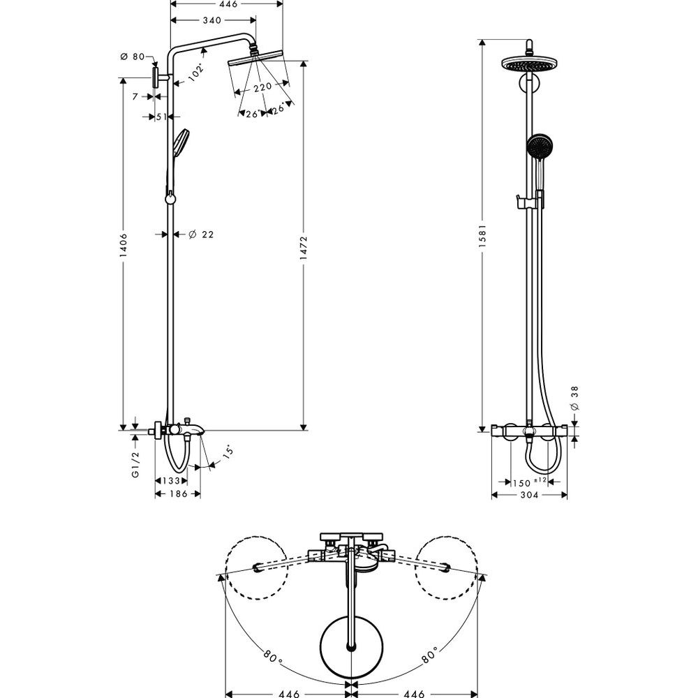 Обратите внимание, что душевая стойка Hansgrohe Croma 220 Showerpipe не регулируется по высоте, поэтому убедитесь в ее подходящей для вас длине. Смеситель уже включен в комплект, что упрощает установку и позволяет начать использование сразу после монтажа.