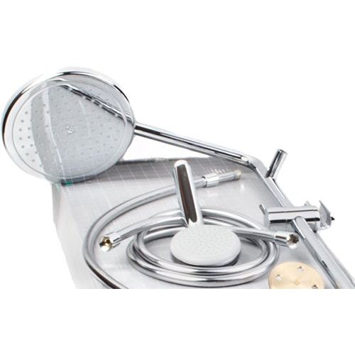 Душевая стойка Hansgrohe Croma 220 имеет высоту 121 см и выполнена из нержавеющей стали, что обеспечивает ее долговечность и устойчивость к коррозии. Верхний душ диаметром 22 см установлен с вылетом 34 см, и его угол установки можно регулировать. Лейка снабжена поворотным конусом и специальными подшипниками для предотвращения перекручиваний шланга, длиной 160 см. Обратите внимание, что в комплект не входит смеситель, но установка всех остальных элементов предельно проста благодаря удобным креплениям. Гарантия на изделие составляет 5 лет.