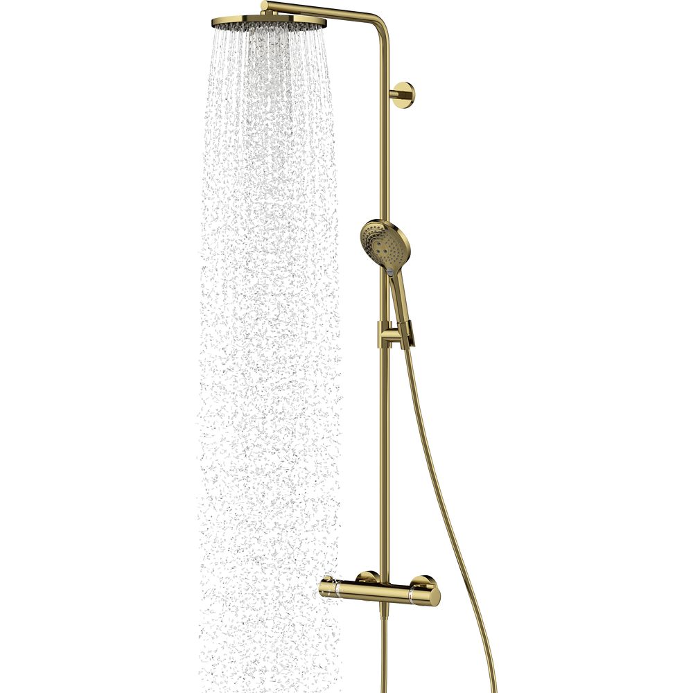 Роскошная душевая стойка Hansgrohe Raindance Select S 240 1jet 27633990 принесет в ваш дом истинное удовольствие от водных процедур. Этот продукт в великолепном полированном золотом выполнении станет стильным акцентом в вашей ванной комнате. Благодаря инновационной системе управления струёй вы получите наивысший комфорт, позволяя выбрать между расслабляющим PowderRain, освежающим Rain и интенсивным Whirl.