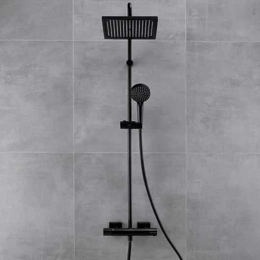 - Комплектация: верхний душ, ручной душ, термостат для душа, штанга для душа, душевая штанга, держатель для душа
