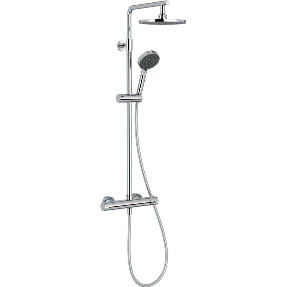 Душевая стойка Jacob Delafon Brive E24322-CP имеет высоту 143.3 см и весит 3.2 кг. Изделие выполнено из латуни с использованием пластиковых элементов. Верхний душ диаметром 20 см имеет вылет 34.1 см, а лейка с 5 режимами струи имеет размер 10 см. Длина пластикового шланга составляет 160 см, и он снабжён поворотными соединениями для предотвращения перекручивания. Встроенный дивертор в ручке управления облегчает переключение потоков. Термостатический картридж и защита от обратного потока гарантируют надежную работу. В комплект входят душевой шланг, лейка и держатель.