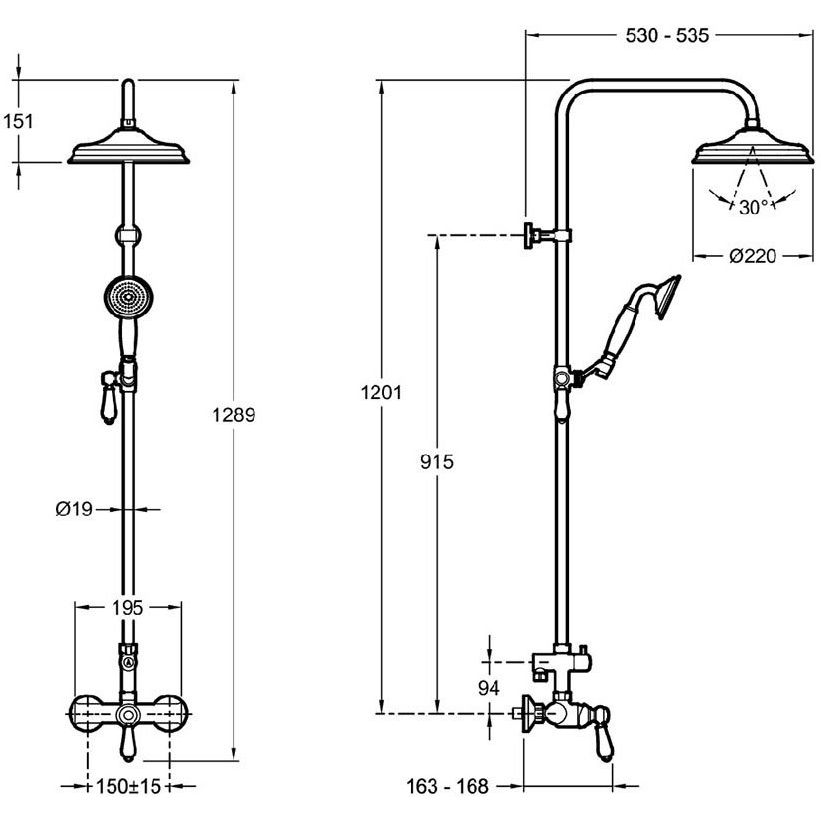 - Высота стойки составляет 120.1 см, что обеспечивает оптимальное размещение душа.
