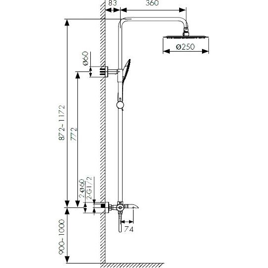 - Большой верхний душ диаметром 25 см для комфортного и равномерного распределения воды.