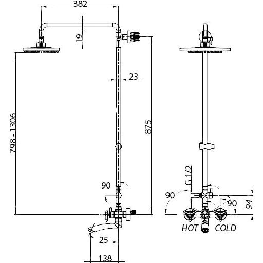 Высота душевой стойки Kaiser Trio составляет 130.6 см, что делает её подходящей для большинства помещений. Вес конструкции - 6.5 кг, что свидетельствует о её надежности и устойчивости. Основной материал - латунь, обеспечивающий высокую стойкость к коррозии и механическим повреждениям. Верхний душ с диаметром 25 см и вылетом 43.2 см подарит вам незабываемое ощущение дождевого потока. Переключатель потоков и поворотный излив длиной 15 см добавляют гибкости в использовании, а керамическая кран-букса обеспечивает плавное и надежное управление.