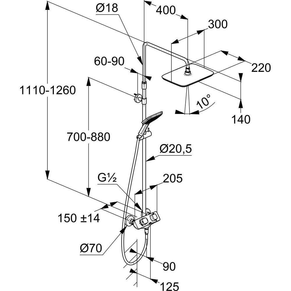 - Высота стойки составляет 126 см, что идеально подходит для стандартных ванных комнат.