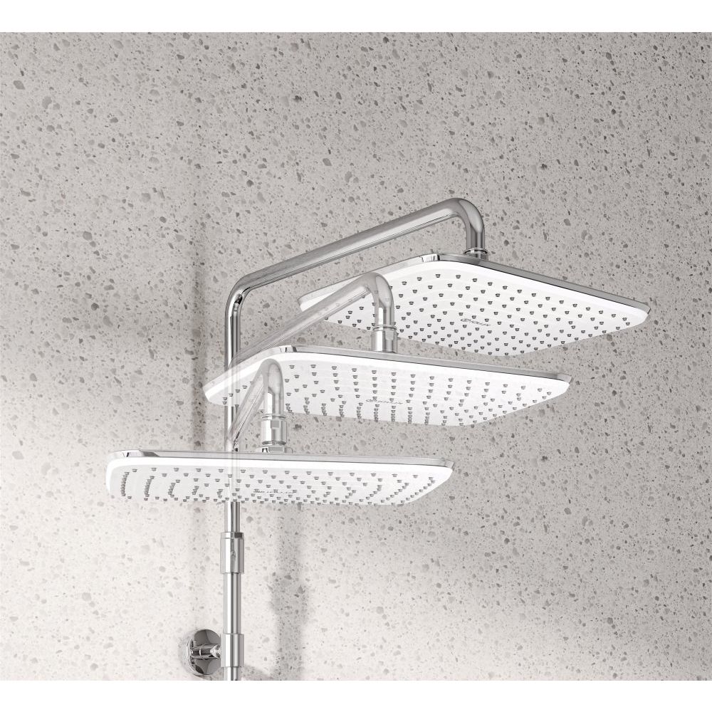- Массивный верхний душ диаметром 30 см и вылетом 40 см обеспечит комфортный поток воды, а лейка с диаметром 13.5 см имеет один режим струи.