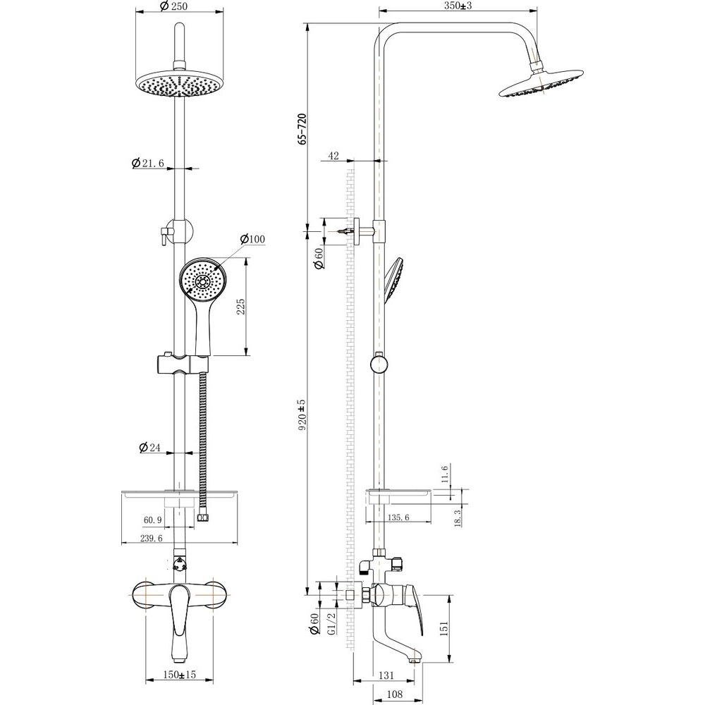 - Верхний душ интегрирован в крышу кабины.