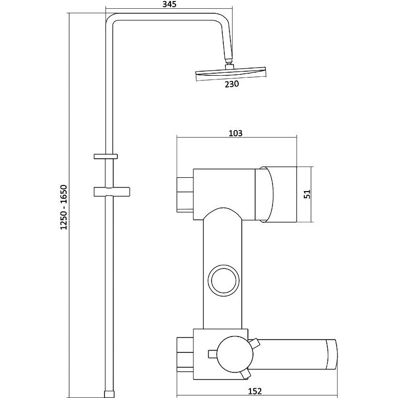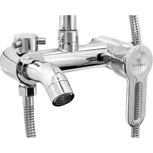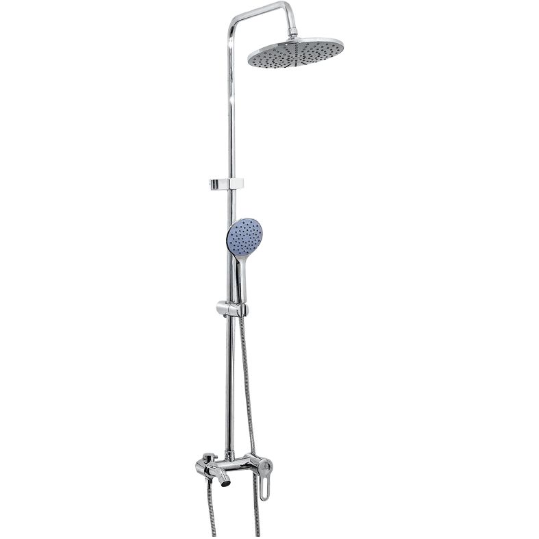 Высота душевой стойки составляет 165 см, что подходит для большинства стандартных ванных комнат. Латунный корпус обеспечивает долговечность. Верхний душ диаметром 23 см и вылетом 37.5 см создают широкий и комфортный поток воды. Лейка диаметром 10 см предлагает один режим струи для простой эксплуатации. Излив длиной 15.2 см является фиксированным и традиционно оформленным, превосходно вписываясь в общий стиль. Шланг длиной 150 см выполнен из металла с двойной оплеткой для дополнительной надежности. Смеситель входит в комплект поставки, что упрощает установку.
