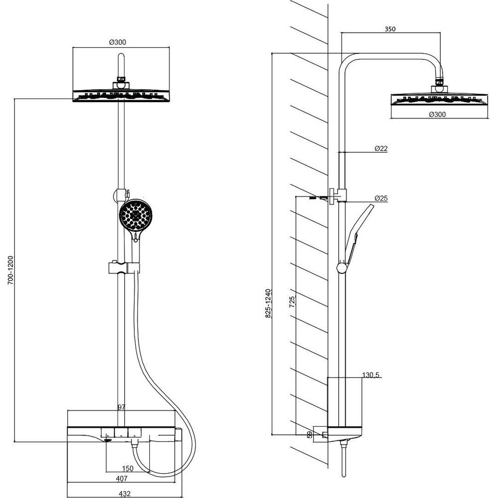 Душевая стойка Vincea Inspire имеет высоту 124 см и весит 7.7 кг. Ее верхний душ диаметром 30 см с вылетом 35 см. Лейка диаметром 10 см обладает четырьмя режимами струи для максимального удовольствия. В комплект входит термостатический картридж с ограничением температуры, пластиковый шланг длиной 150 см оснащен защитой от перекручивания. Кроме того, стойка снабжена душевой лейкой, держателем, переключателем потоков и аэратором.