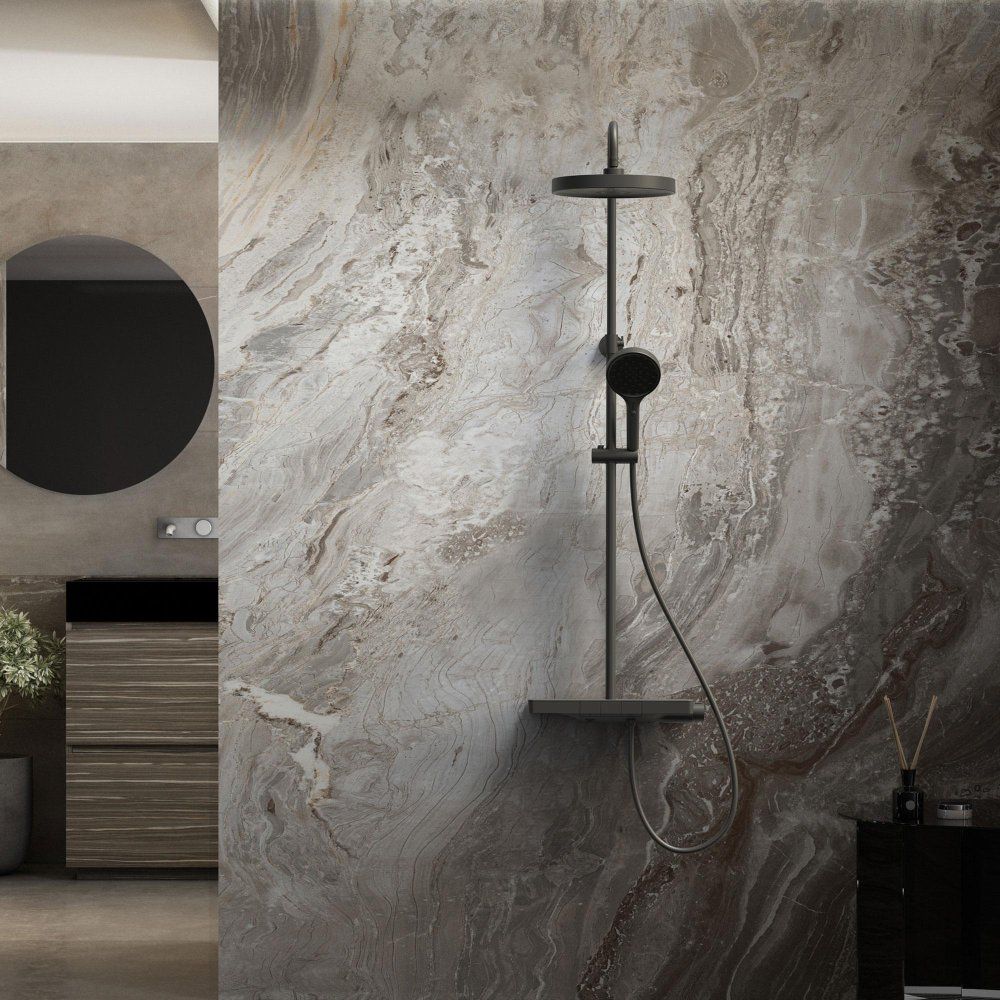 - Стильный черный цвет создаст особую атмосферу в ванной комнате.