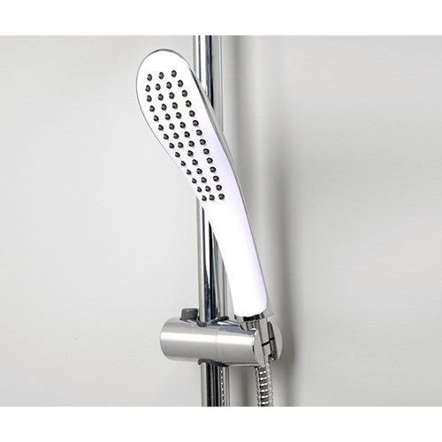 Смеситель для душа Wasserkraft Dill 6102 изготовлен из латуни с глянцевым покрытием, предусматривает установку отдельно приобретаемого душевого гарнитура и оборудован керамическим картриджем для плавного регулирования температуры и потока. Душевая стойка имеет высоту 98 см и вес 2.35 кг. Верхний душ диаметром 24.6 см обеспечивает комфортный поток воды благодаря вылету 30.3 см. Лейка с одним режимом струи обладает диаметром 6 см, а длина металлического шланга составляет удобные 150 см для комфортного использования. Комплект дополнен душевой лейкой, держателем, переключателем потоков и аэратором.