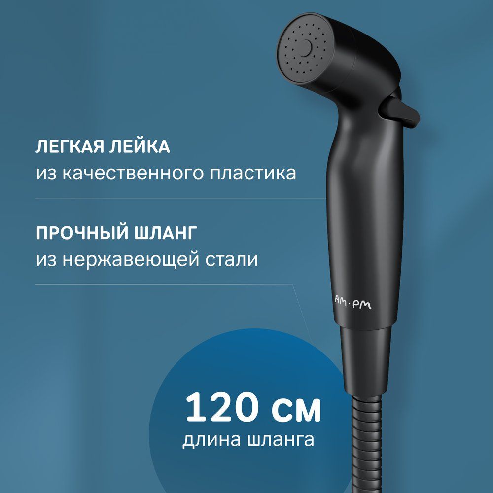 Гигиенический душ AM.PM оснащен рычажным управлением и металлическим шлангом, что обеспечивает удобство в использовании. Его матовая поверхность обладает специальным покрытием, облегчающим очистку. Лейка диаметром 3.3 см изготовлена с керамическим картриджем и подводкой 1/2 дюйма. В комплект входят душевой шланг, держатель для душа, крючок, полочка и держатель туалетной бумаги. На изделие предоставляется 10-летняя гарантия от производителя, что подтверждает его надежность и высокое качество.