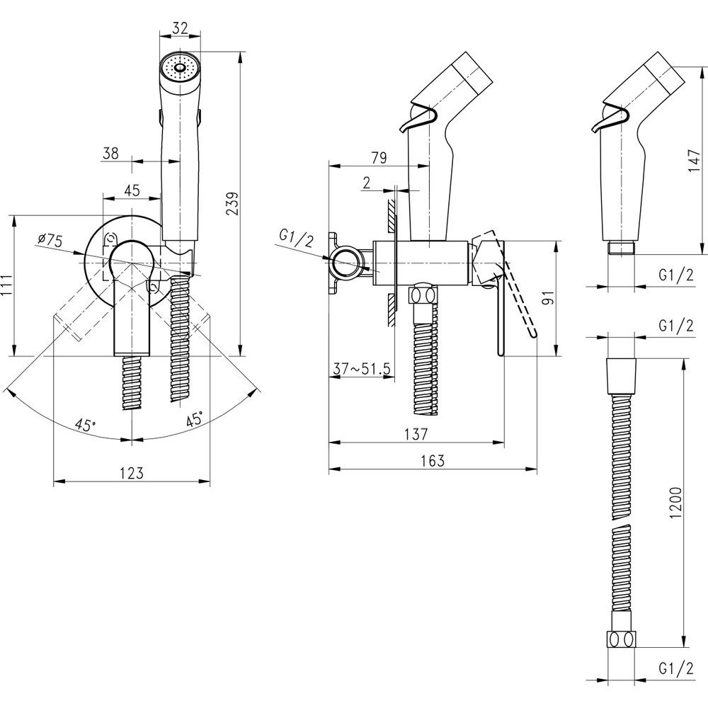 - Длина шланга 120 см гарантирует свободу движения и удобство использования.