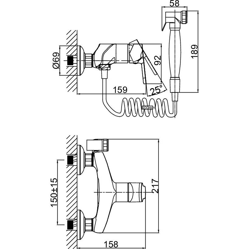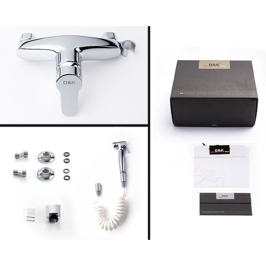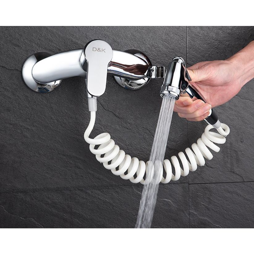 Гигиенический душ D&K Rhein Marx DA1394541 оснащён смесителем и растягивающимся душевым шлангом длиной 120 см. Подводка стандартная — 1/2 дюйма. В комплект также входят душевой шланг и держатель для душа. Простое и понятное рычажное управление позволяет легко регулировать температуру и напор воды. Глянцевая поверхность придаёт изделию стильный и современный вид.