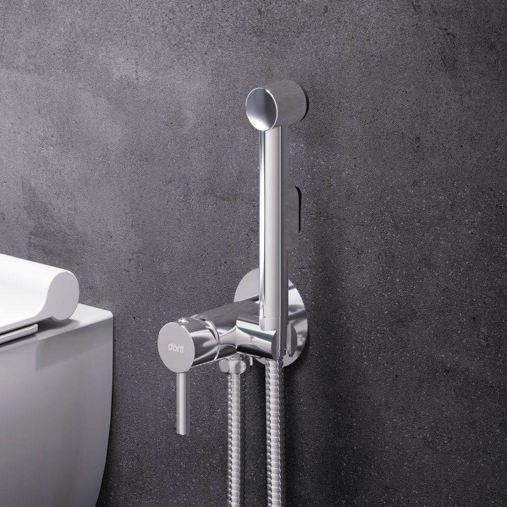 Гигиенический душ Dorff Logic D3075000 выполнен из износостойкой латуни и покрыт глянцевым хромовым слоем. В комплекте идёт смеситель и душевая подводка 1/2 дюйма, а также шланг длиной 150 см с держателем для душа. Управление осуществляется с помощью удобного рычажного механизма, а установленный керамический картридж обеспечивает плавную и бесшумную работу устройства.