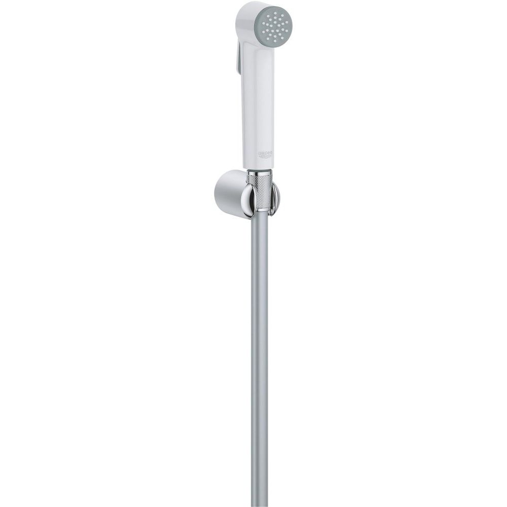 Гигиенический душ Grohe Tempesta-F 26355IL0 выполнен из латуни и пластика, включает в себя душевой шланг длиной 100 см и крепление для настенного монтажа. Шланг сделан из пластика и легко очищается благодаря специальной поверхности, а также защищен от скопления известковых налетов.