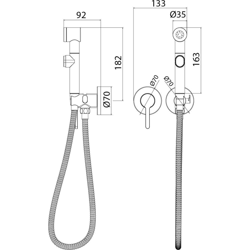 Этот гигиенический душ включает в себя встраиваемый смеситель на два отверстия с ультрамодным дизайном и функциональной внутренней частью. Удобное рычажное управление обеспечивает простоту использования. В комплекте идет металлический шланг длиной 150 см с поворотными элементами, предотвращающими перекручивание. Глянцевая поверхность усиливает эстетичность, а надежный керамический картридж гарантирует долговечную работу. Подводка стандартная - 1/2 дюйма.