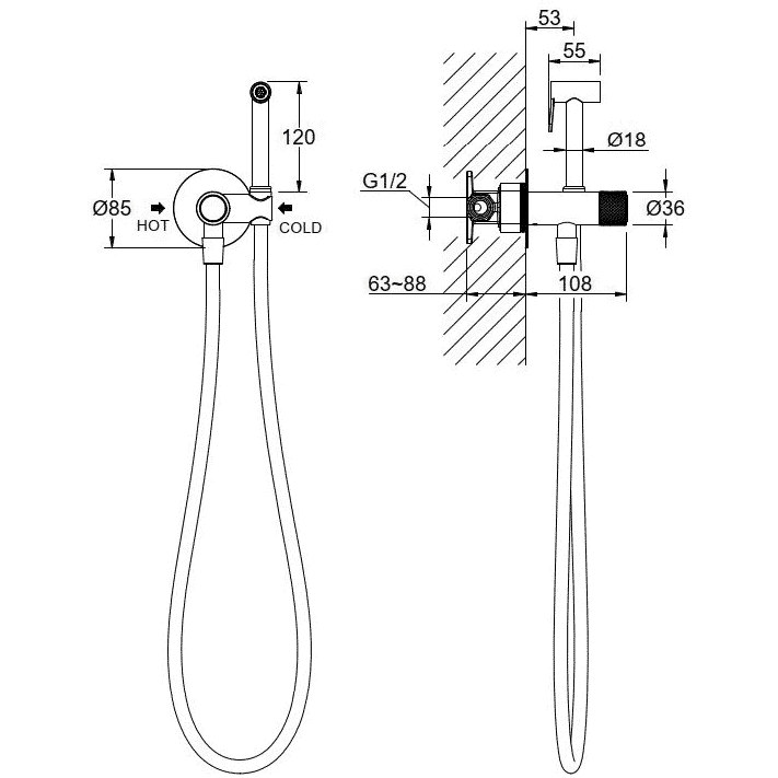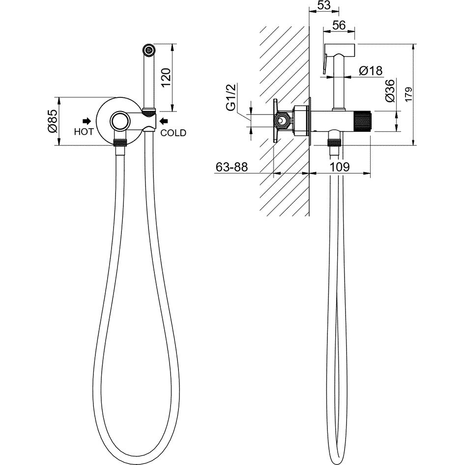 • в комплекте гигиенический душ, держатель для душа и шланг