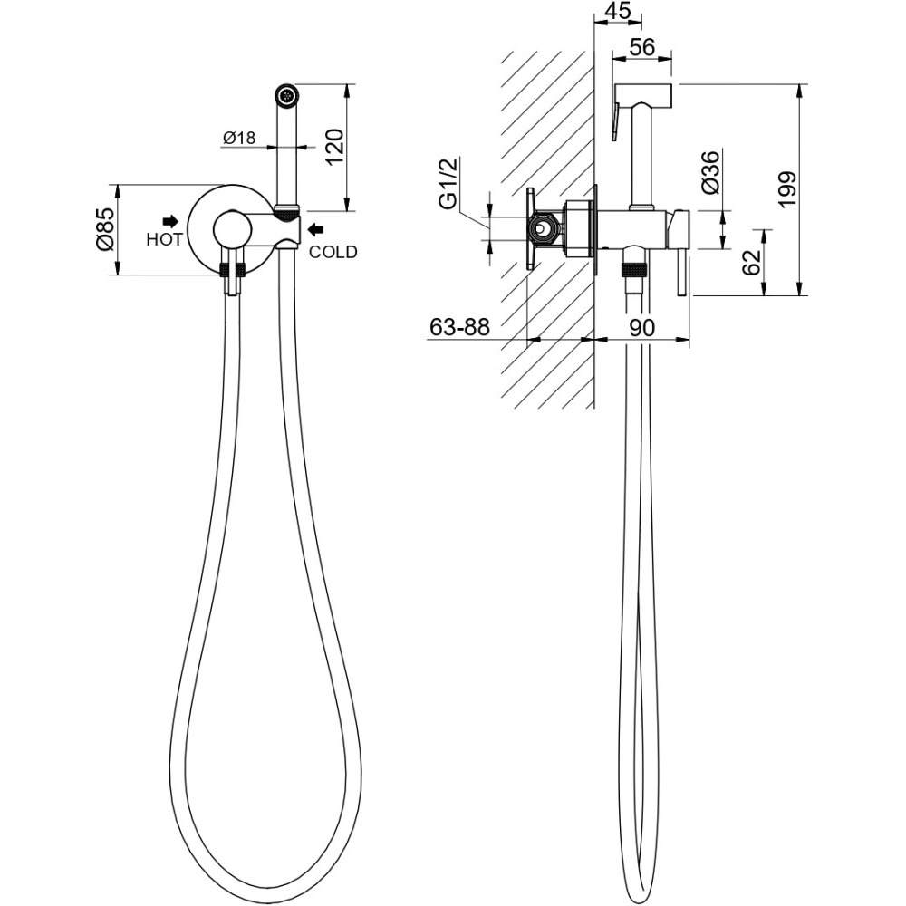 • душевой шланг 1,2м из нержавеющей стали• однорычажная система регулировки силы струи и температуры воды