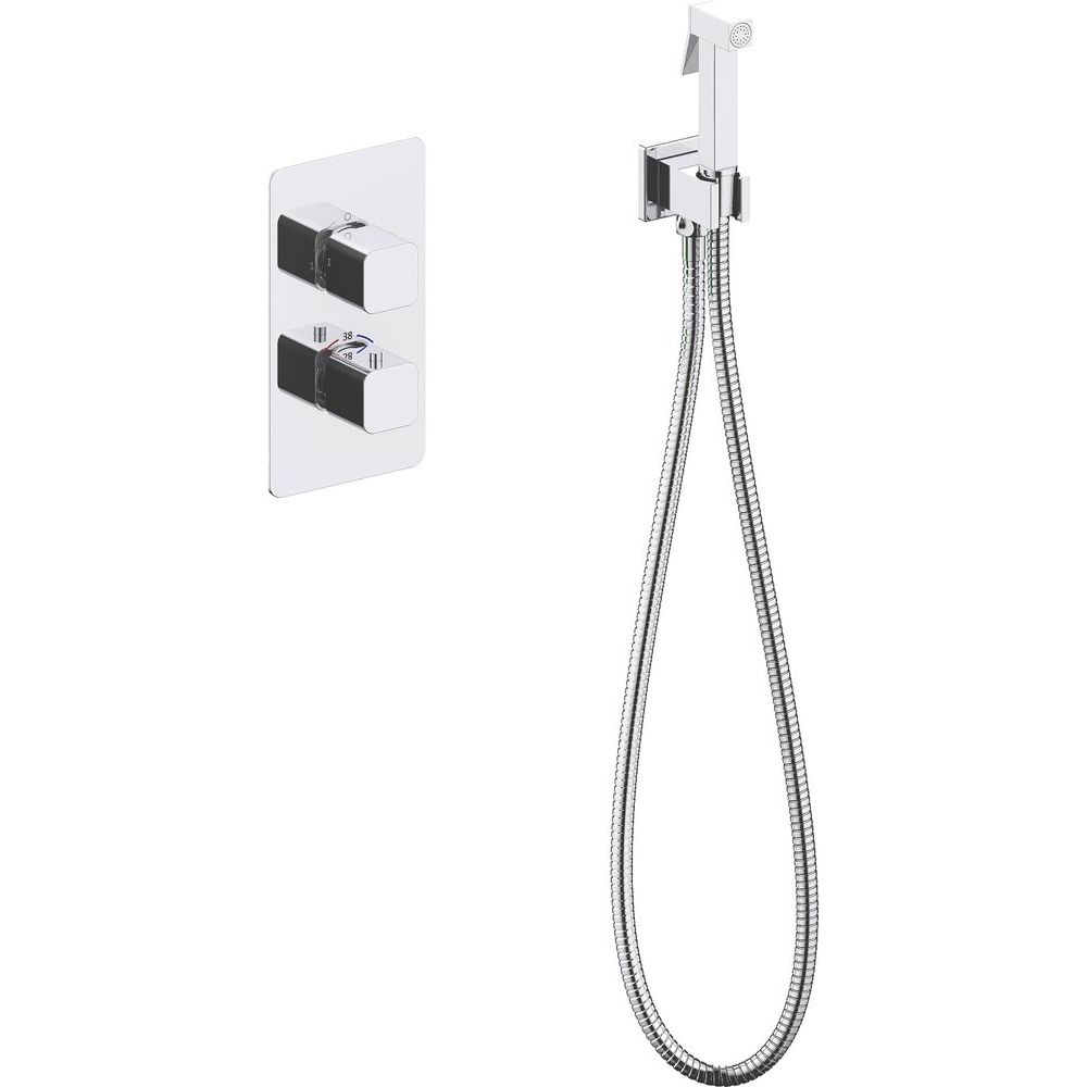 Этот гигиенический душ имеет латунный смеситель и термостатический картридж диаметром 35 мм. Общая длина металлического шланга составляет 120 см, а размер лейки — 1.9 см, что обеспечивает удобство использования и гибкость. Компоненты оснащены надежным шланговым подключением и держателем для душа, что позволяет легко установить и пользоваться устройством.