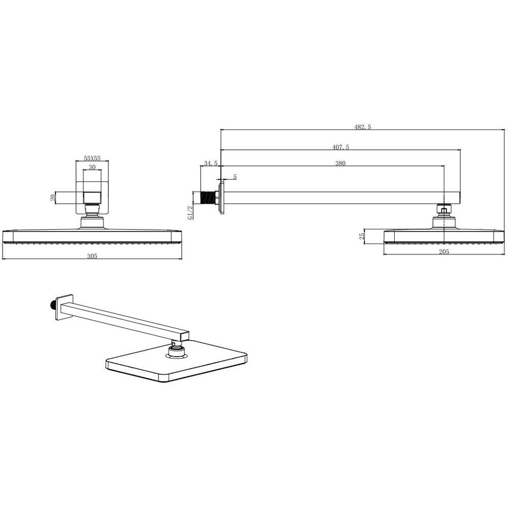 Размер верхнего душа составляет 30,5 см, что обеспечивает широкий и равномерный поток воды для максимального комфорта. С вылетом в 38 см и монтажом на стену, устройство оптимально вписывается в пространство любой ванной. Подключение с подводкой 1/2 обеспечивает легкую интеграцию в существующую систему.