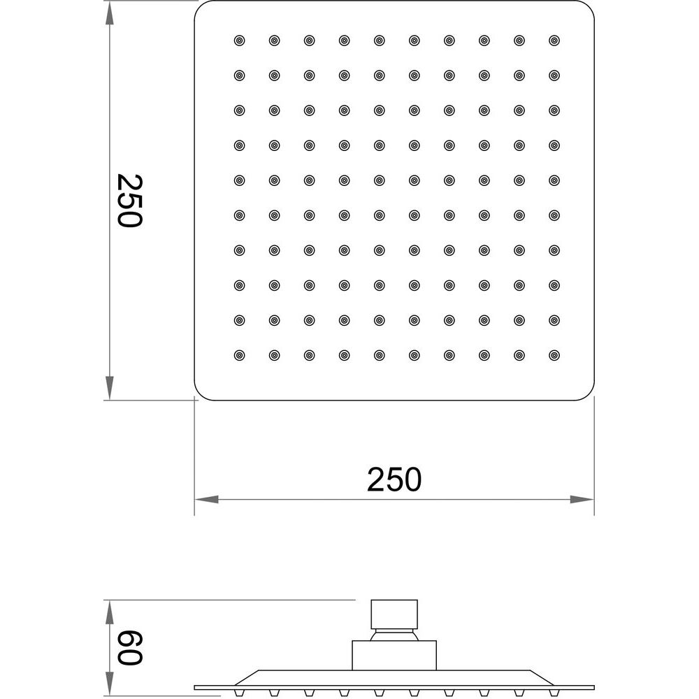 - Размер душевой насадки — 25 см, обеспечивающий оптимальное покрытие потока воды.