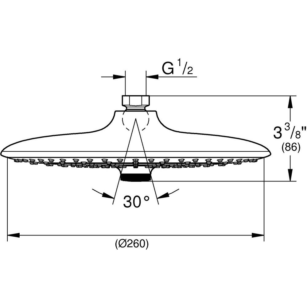 Этот верхний душ диаметром 26 см снабжен тремя режимами струи и монтируется на потолок, что делает его идеальным решением для просторных ванных комнат. Специальное внутреннее покрытие защищает устройство от образования извести и скопления загрязнений, обеспечивая долгий срок службы. Глянцевая поверхность подчеркивает эстетическое совершенство Grohe. Подача воды осуществляется через подключение 1/2, с расходом 9.5 литров в минуту. Продукт поставляется с гарантией на 1 год, что подтверждает его надежность и качество немецкого производства.