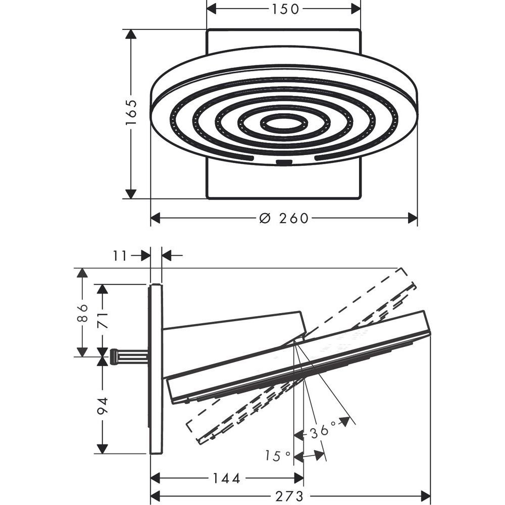 Верхний душ имеет размер 26 см и вылет 14.4 см, обеспечивая широкий охват водного потока. Он оборудован двумя режимами струи и предназначен для монтажа на стену. Проточные водонагреватели вполне совместимы с этой моделью. Устройство включает кронштейн для верхнего душа и имеет расход воды 11.3 литра в минуту. С антиизвестковым покрытием уход за душем становится проще, обеспечивая легкое очищение. Продукция Hansgrohe - символ долговечности и точности. Поддерживается гарантия 5 лет.