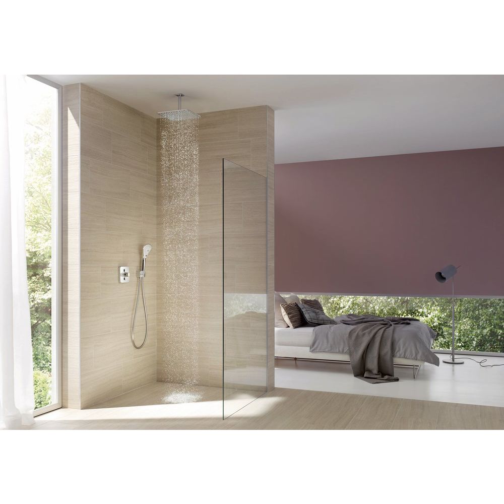 Верхний душ размером 25 см выполнен с глянцевым покрытием, которое придаёт ему привлекательный вид. Особое внутреннее покрытие препятствует образованию известковых отложений и загрязнений. Расход воды составляет всего 9 литров в минуту, при этом подключение осуществляется через стандартную подводку 1/2 дюйма. Легкость в чистке и защите от износа подтверждена гарантией на 5 лет, что делает это изделие идеальным выбором для долгосрочной эксплуатации. Произведено в Германии, что гарантирует высочайшее качество исполнения.