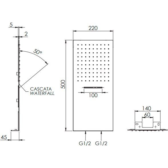 Этот верхний душ имеет диаметр 25 см, что обеспечивает обширное покрытие струи для максимального комфорта. Он оснащён двумя режимами струи, где один из них — режим каскада — имитирует приятный поток водопада, создавая атмосферу спа на дому. Устройство предназначено для настенной установки и поддерживает стандартную подводку 1/2 дюйма, что упрощает монтаж.