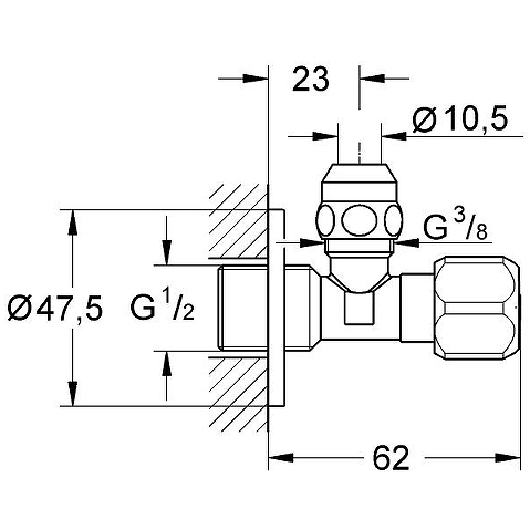 - Универсальный угловой вентиль 1/2"