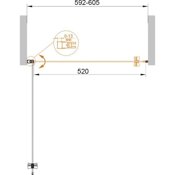 - Універсальность установки с настройкой ширины от 59,2 до 60,5 см позволяет адаптировать дверь к нишам разной ширины.