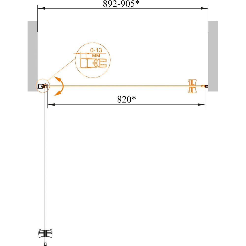 Габариты двери составляют 90x190 см, что позволяет обеспечить практичную и удобную установку на любой поддон. Ширина двери регулируется, что дает возможность адаптировать её под размеры вашей ниши. Благодаря универсальной ориентации двери можно настроить открытие внутрь или наружу, удовлетворяя любые потребности и предпочтения. Прочное стекло толщиной 6 мм обеспечивает надежную защиту и долговечность.