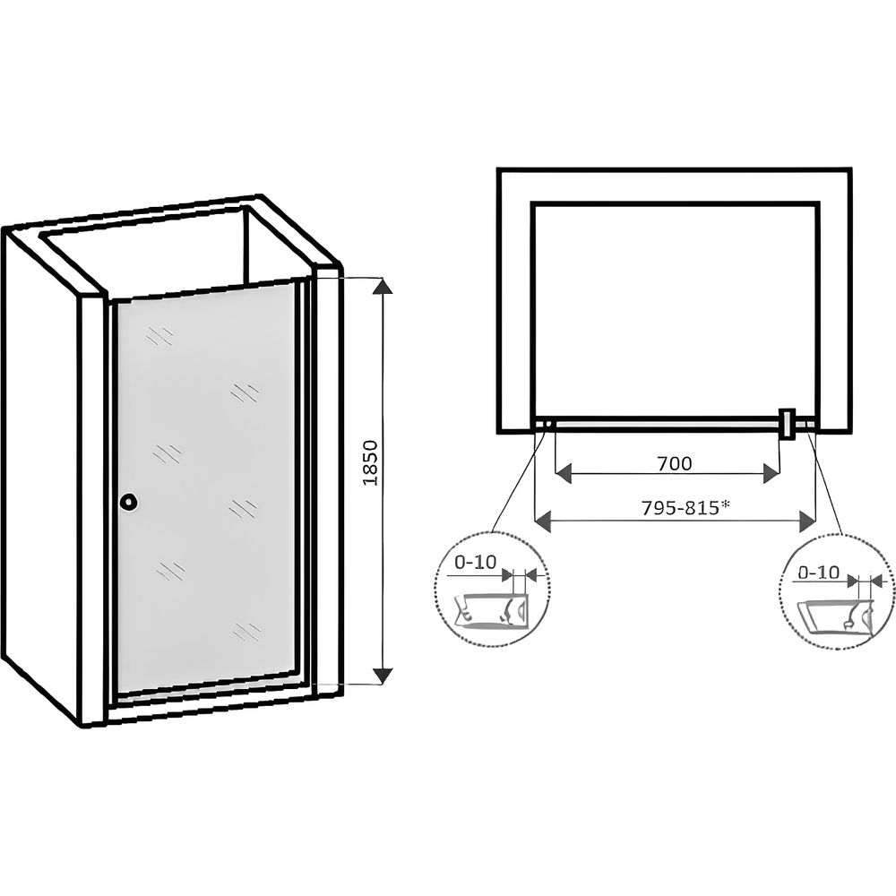 Компактные габариты дверей — 80x185 см, делают их идеальными для большинства ванных комнат. Полотно двери, толщиной 5 мм, оформлено прозрачным стеклом с изящным рисунком. Система распашных дверей обеспечивает легкий доступ, а ширина входа составляет 74 см, что расширяет удобство использования. Профиль из алюминия с глянцевой отделкой не подвержен деформации от влажности и температуры. Модель может быть установлена как на напольное покрытие, так и на поддон. На изделие распространяется гарантия сроком на 1 год.
