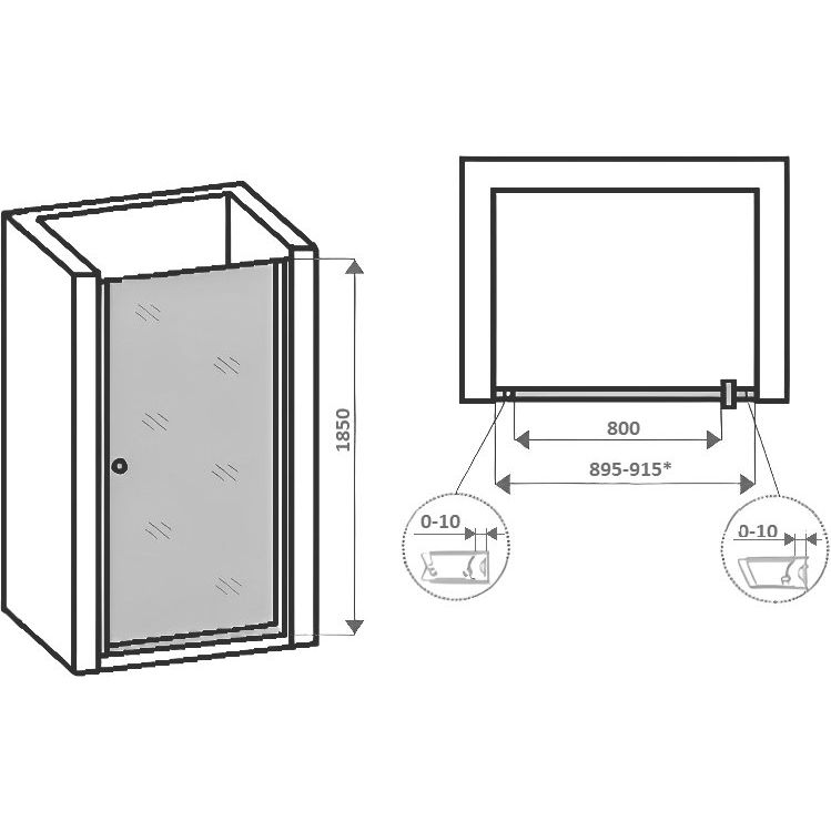 Душевая дверь Parly DE90B имеет габариты 90x185 см и может быть установлена как напольным монтажом, так и на поддон. Конструкция включает распашную систему дверей с прозрачным полотном, позволяя создать ощущение простора в ванной комнате. Ширина входа составляет удобные 80 см.